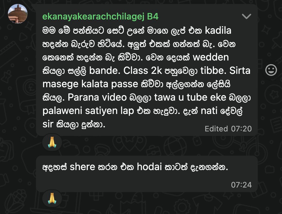 ✔️ පංති අවසානයෙන් පසු සහාය