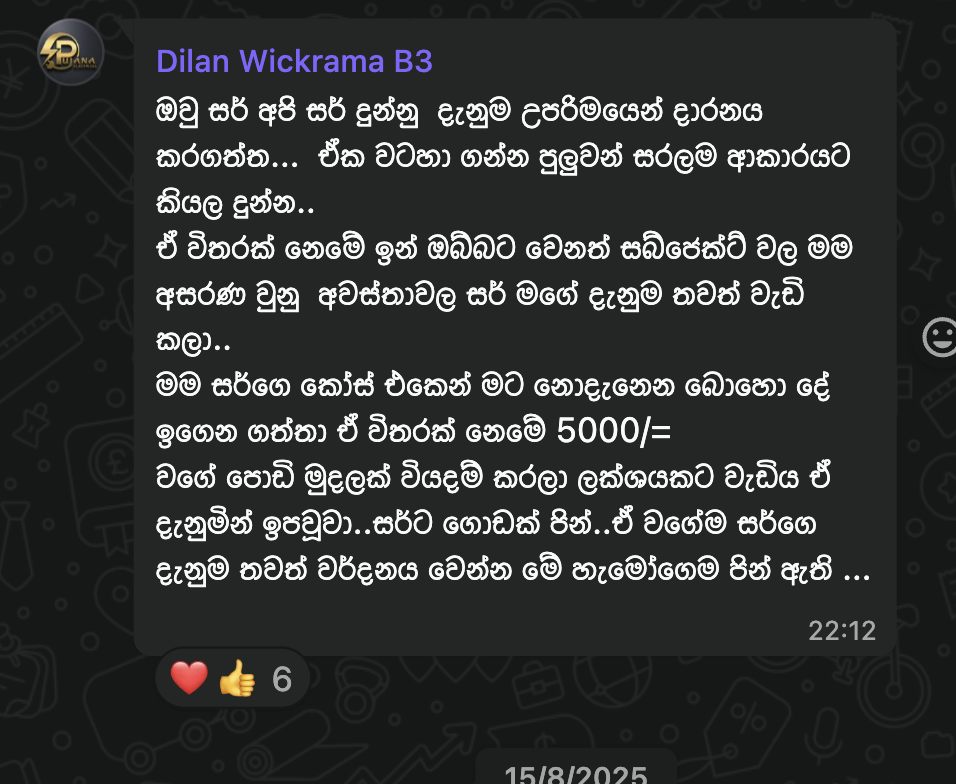 💵 පාඨමාලා ගාස්තුව: රු. 6,500 /=